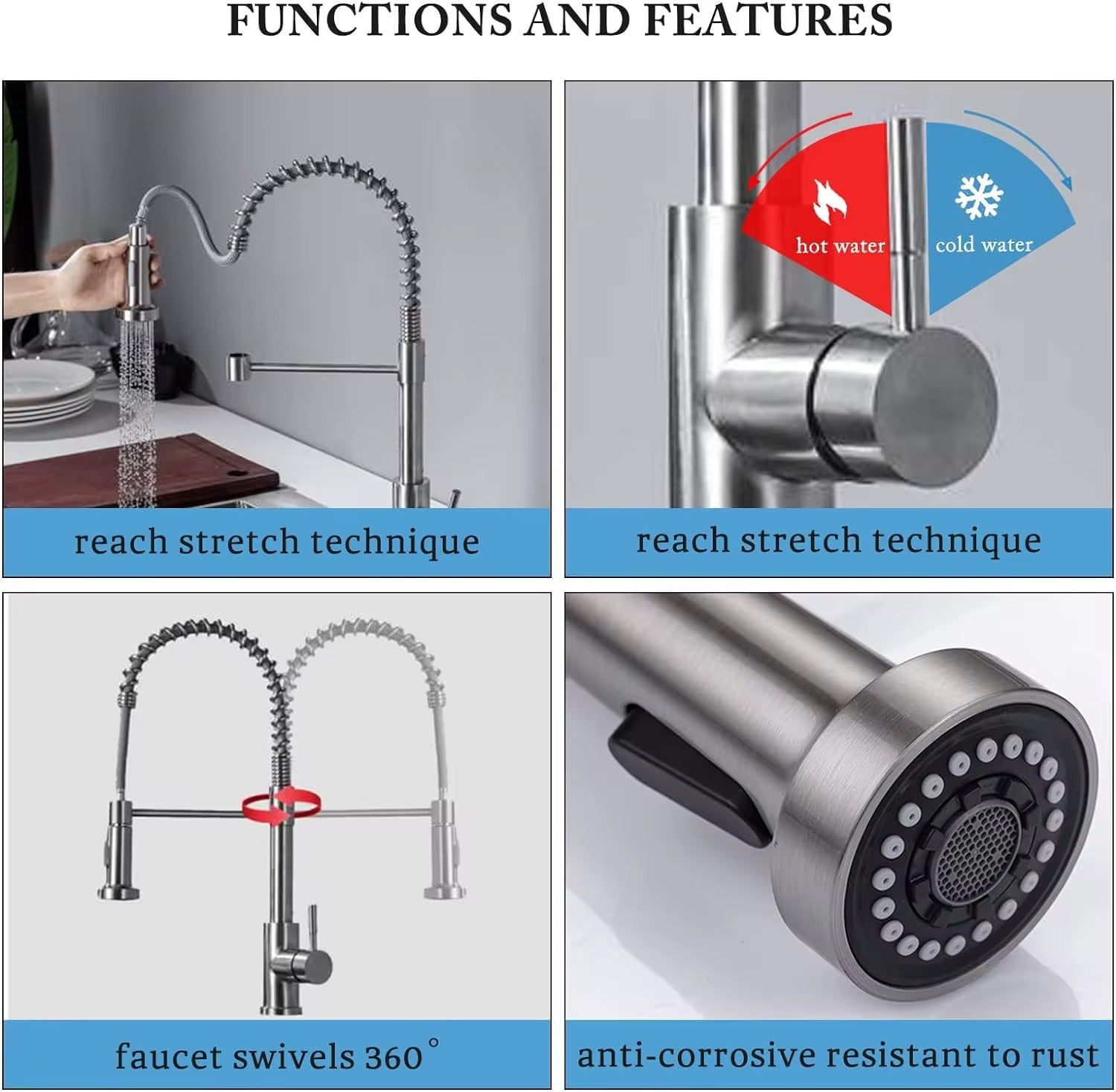 Flexible Spring Design – Industrial-style spring spout offers full range of motion and a modern aesthetic for any kitchen.