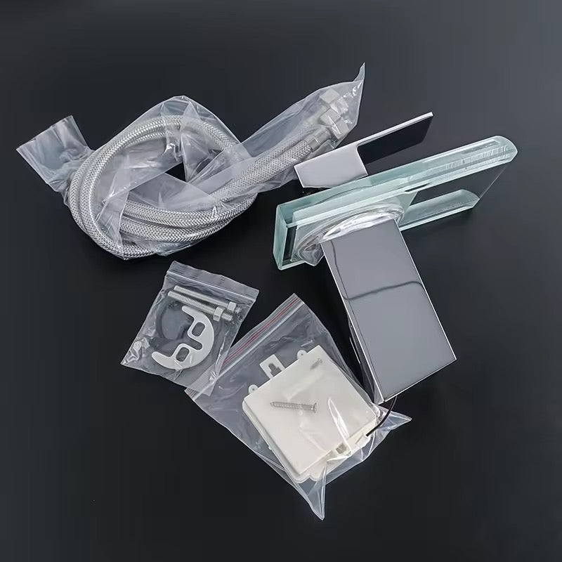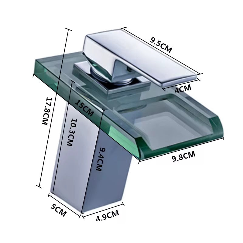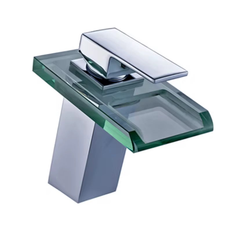 Upgrade your bathroom aesthetics with this modern Glass Waterfall Bathroom Faucet, featuring a tempered glass spout and sleek chrome-finished body. The broad, curved glass panel gently cascades water into the basin, providing a tranquil and spa-like experience every time you wash your hands.