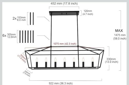 - Stunning Design: This clean linear island light crafted from metal, showcases an open, geometric frame sprayed in a matte black finish, 7 candlestick-shaped bulb bases sitting lined up on the fixture, which could give off the perfect amount of lighting without feeling obnoxiously bright; A simple, yet statement fixture adds a touch a style and interest to any room