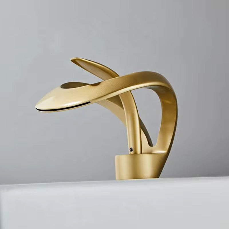 Luxury Waterfall Bathroom Faucet – Single Handle Artistic Basin Mixer Tap, Modern Sculptural Design in Brushed Finish Odz007