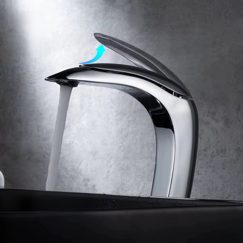 Upgrade your bathroom with this modern chrome waterfall faucet designed to impress. The faucet features a sleek, contemporary silhouette with a unique lift-style handle that not only makes operation effortless but also adds a futuristic touch to your space. Engineered for both form and function, the faucet produces a soothing waterfall stream that enhances your daily routine. Crafted from solid brass and finished in polished chrome, it resists corrosion, rust, and everyday wear, making it perfect for modern households. Whether you're completing a renovation or simply refreshing your vanity, this single-handle faucet combines beauty and performance in one elegant package. Easy to install and easier to admire.