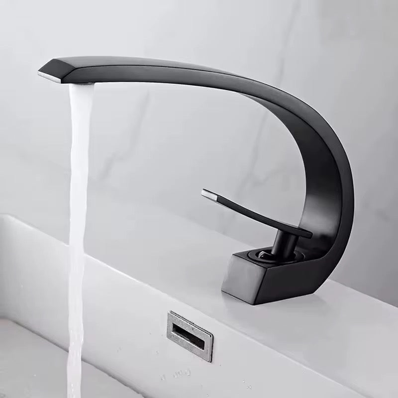 Elevate your bathroom aesthetics with our Modern Matte Black Bathroom Faucet, crafted for both elegance and function. This uniquely curved, high-arc faucet features a minimalist single-handle design that delivers smooth and precise control of water temperature and flow.