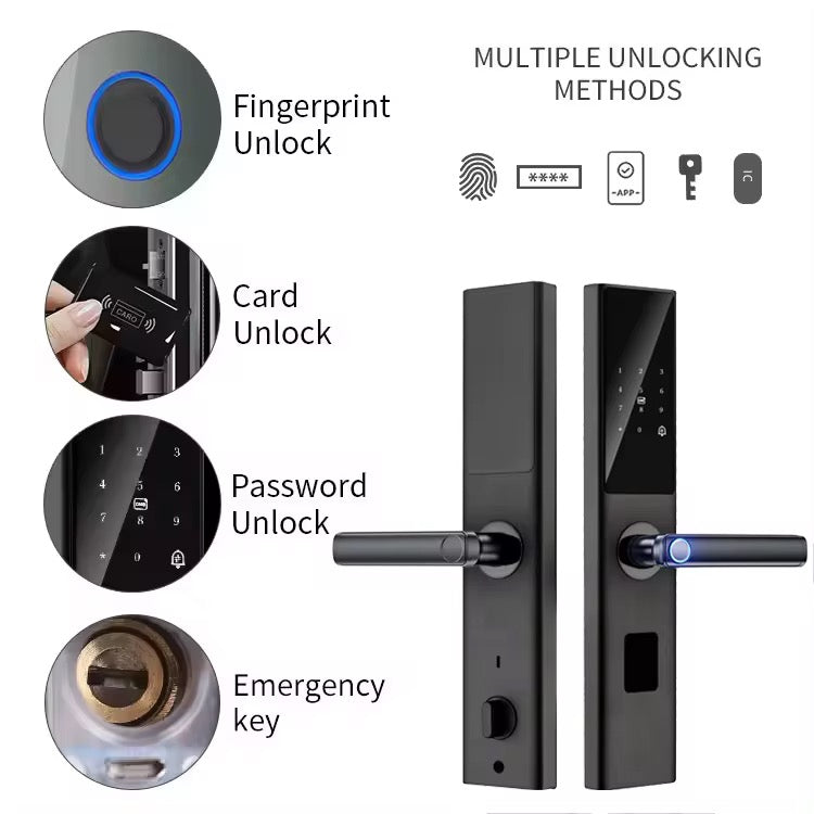 - Easy Operation: You can not only unlock the door with your fingerprint, card, key or the code you set, but also can open the door with tuya APP(BLE), very smart and convenient.