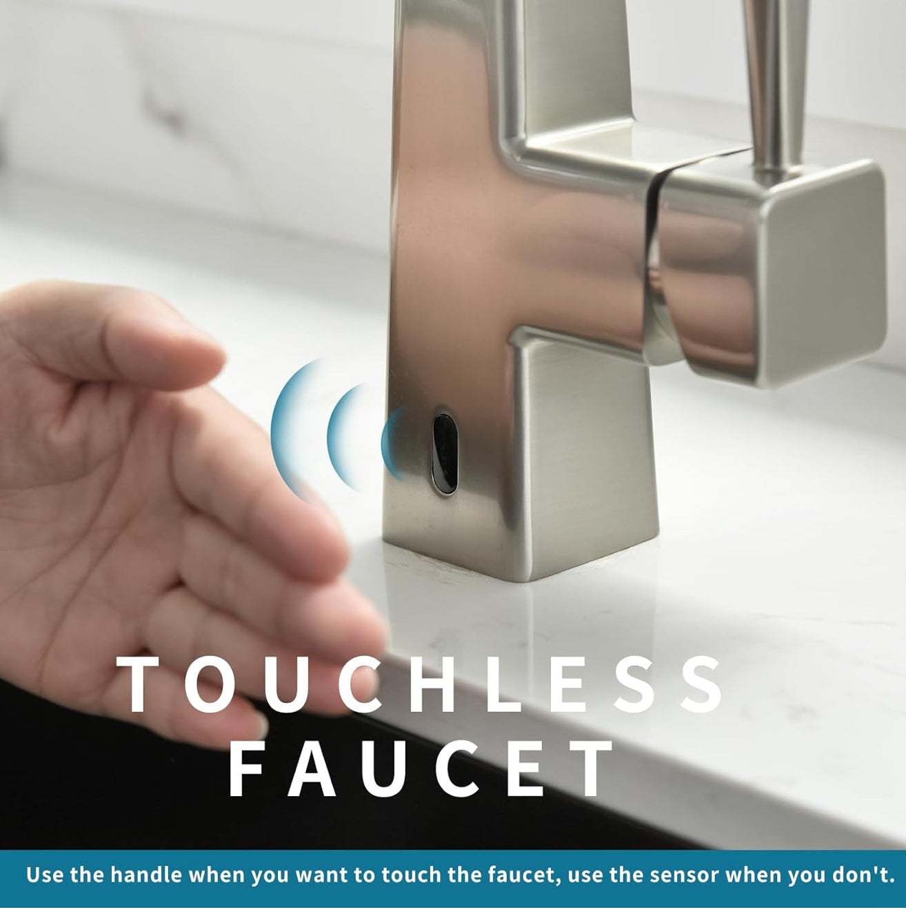 Modern Square Base Design – Stylish geometric base with clean lines and a high arc spout adds a modern touch to any kitchen décor.